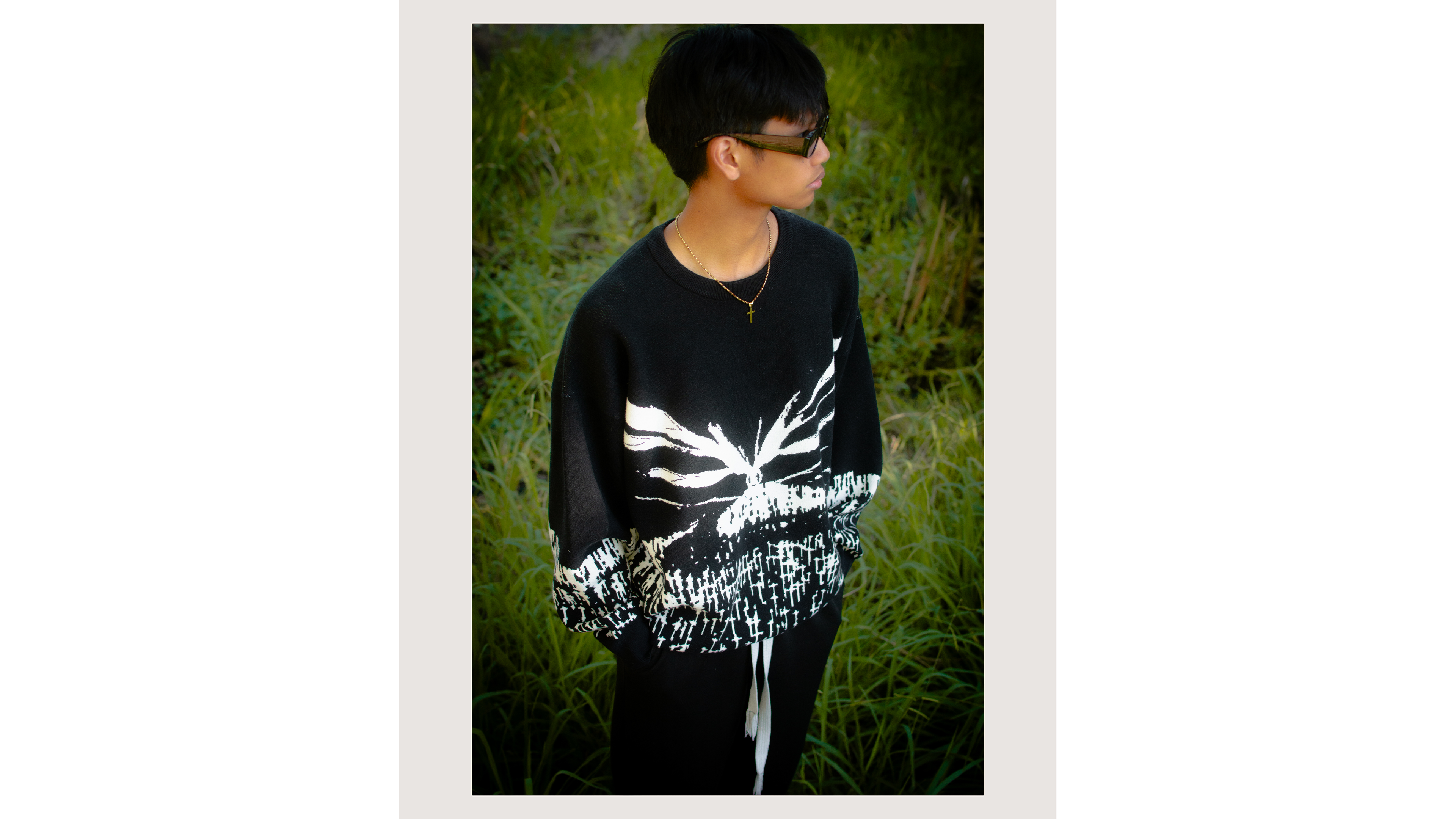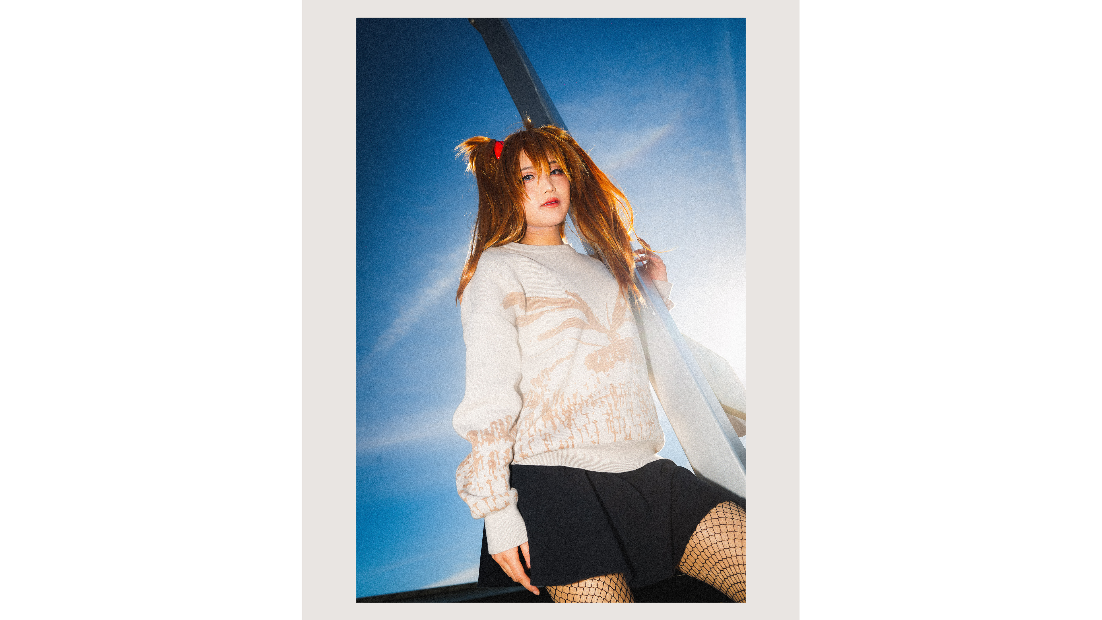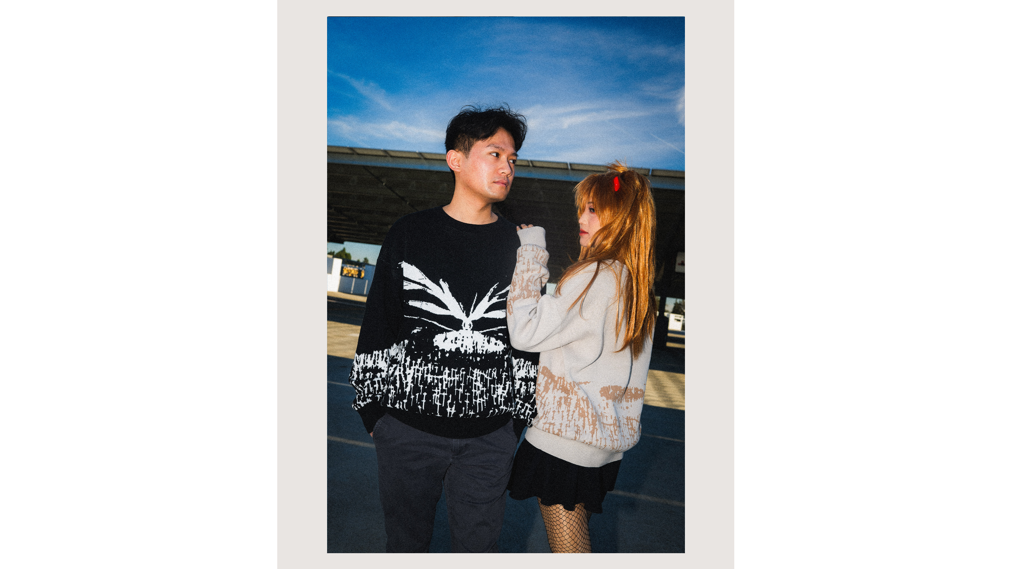 a heavyweight knit sweater in a black or latte colorway with our Eva-inspired design knit into the garment. fully custom cut and sew cotton. stitched label in neckline. super soft and comfy. part of our C&S project <3